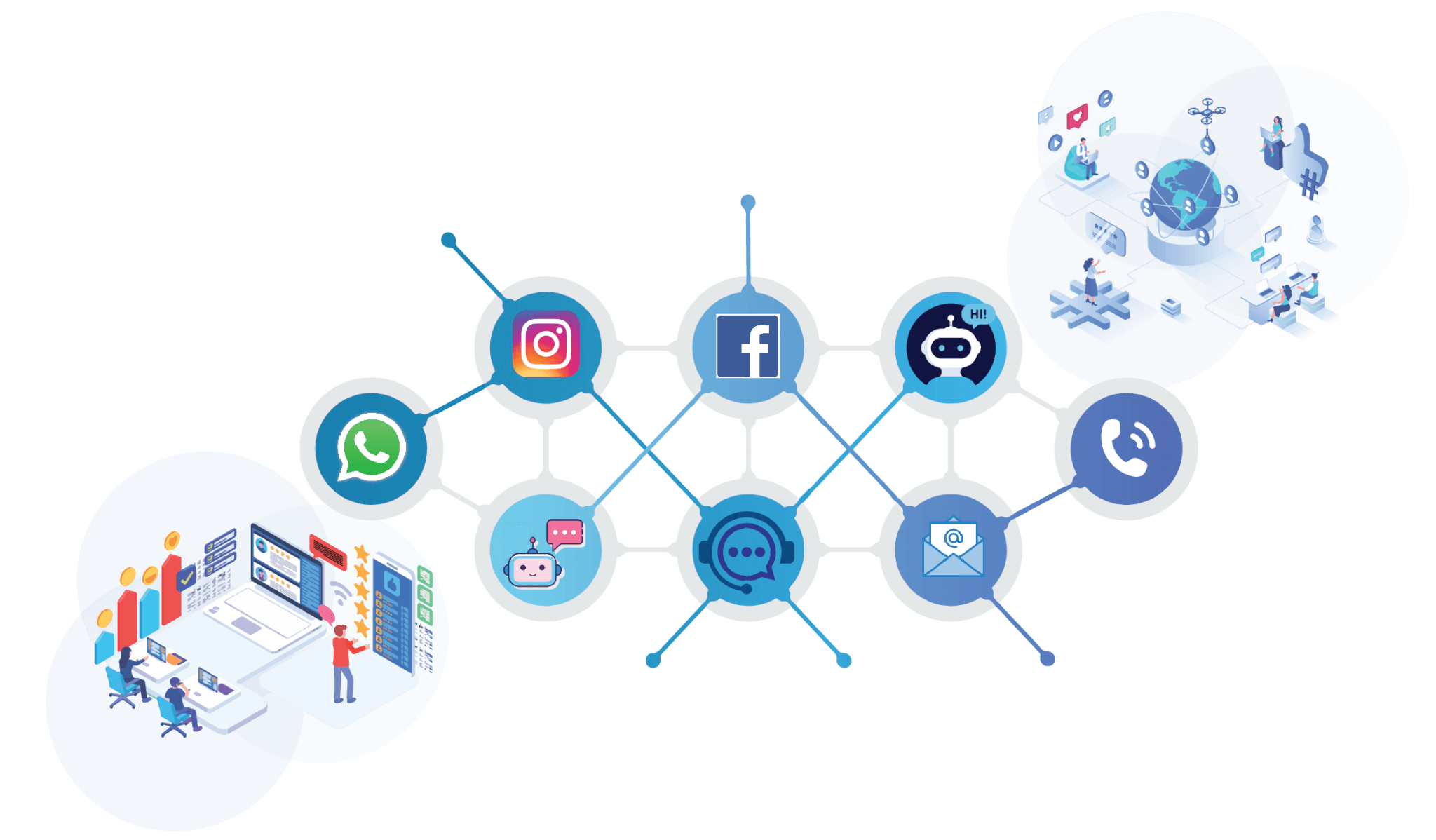 Voice calls, email, live chat, SMS, WhatsApp, Facebook Messenger, Instagram, and more.